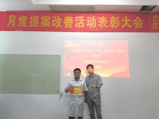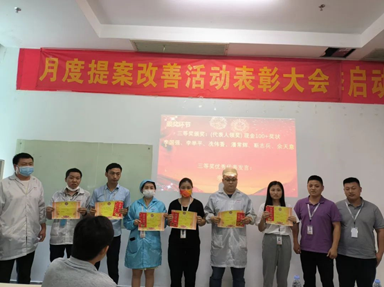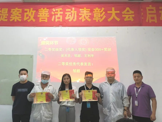 為表彰員工對公司發(fā)展提出優(yōu)秀提案,同時為充分調(diào)動員工主觀能動性,把提案改善作為持之以恒的工作來推進,讓更多的員工能夠參與進來,2022年6月21日,華南工廠召開了五月提案改善表彰大會。公司對本次提案獲得者頒發(fā)了榮譽證書和獎金。